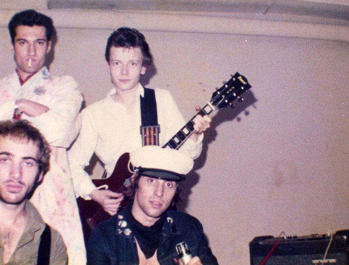 Une des rares photos des Béruriers version Botzaris prise lors d’un concert au Centre autonome d’expérimentation sociale (CAES, 1981-2016) à Ris-Orangis en 1982. De gauche à droite et de haut en bas : François (clop au bec), Olaf (guitare en bandoulière), Pascal Niro (ex-Abject, Nice, 1977-1978) et Mickey (futur Cantada). Deux chanteurs, deux guitaristes et une boîte à rythme. Vue sur Raya 80’s.