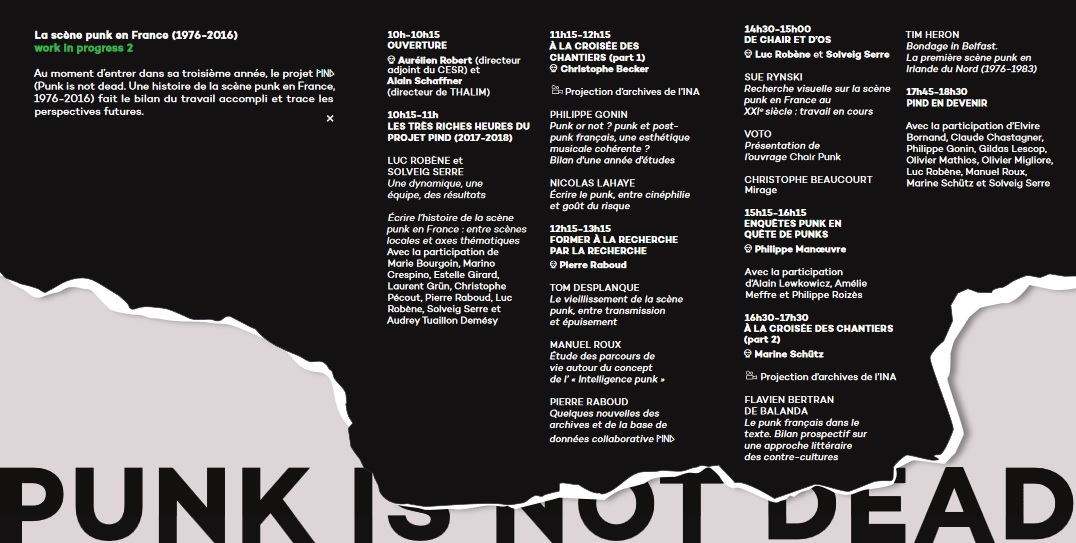 Au moment d’entrer dans sa troisième année, le projet PIND (Punk is not dead. Une histoire de la scène punk en France, 1976-2016) fait le bilan du travail accompli et trace les perspectives futures. A ne pas manquer !